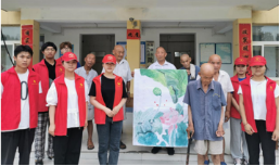 向老人献画 为姬庄村电商平台绘制宣传竹匾