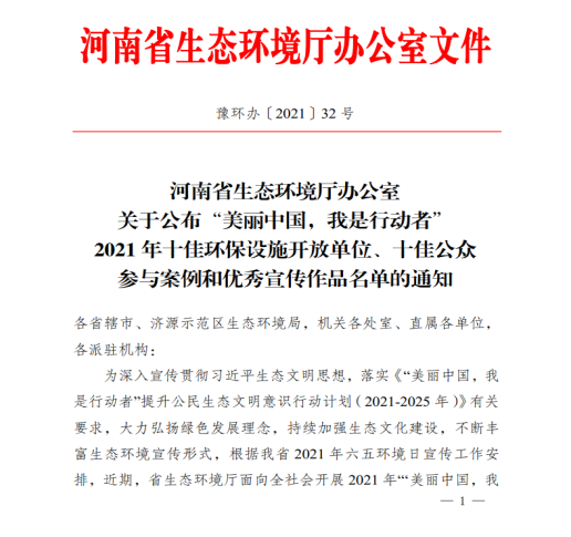 (通讯员:杨冰 邢智洋)6月2日,河南省2021年六五环境日系列宣传活动开幕式暨表彰大会在河南省生态环境厅三楼会议室举行,会上揭晓了“河南出彩环保人”、十佳环保设施开放单位、十佳公众参与案例、生态环境优秀创意作品和优秀摄影作品。河南省政协副主席朱焕然,河南省生态环境厅党组书记、厅长王仲田,河南省人大环资委主任委员、常委会环资工委主任朱长青,河南省委宣传部二级巡视员牛素玲、河南省教育厅副总督学黄才华分别为获奖单位和个人颁奖。由公司BETWAY必威申报的“学用结合守护绿色鹰城”案例荣获河南省2021年十佳公众参与案例并在主会场接受表彰。