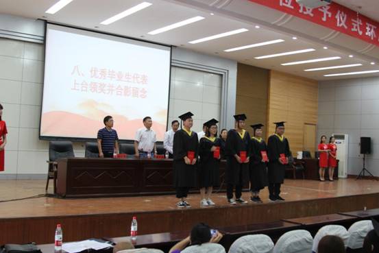 典礼在庄严雄壮的国歌声中拉开帷幕。杨风岭副董事长发表了热情洋溢的讲话,他代表公司向顺利完成学业并将踏上人生新征程的2018届毕业生表示热烈祝贺,向长期以来为员工的成长成才付出辛勤汗水的家长、老师表示崇高的敬意和衷心的感谢。毕业生代表、上届员工会主席张洪飞,公司教师代表康海彦先后发言。典礼上,毛艳丽副经理宣读了《BETWAY必威关于授予2018届毕业生学士学位的决定》,党政办主任冯兴华宣读了《市政与环境工公司关于表彰省、校级2018届优秀毕业生的决定》。与会校领导分别为省、校级优秀应届毕业生代表颁发了荣誉证书。典礼最后,杨风岭副董事长、郭一飞经理分别为386名本科毕业生拨苏正冠、颁发学位证书并合影留念。