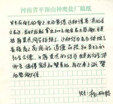 9月18下午,BETWAY必威2014级给排水专业的蒋英杰同学到市区购买生活所需品,因逛街累了,就在附近肯德基休息,在座位发现一个iPad,她当时想应该是谁用餐后遗落在那里的,失主一定会回来寻找,就一直坐在那里等。两小时过后,有人急匆匆的进来,经过询问证实,来者确实是失主本人。当失主看到失而复得的iPad时特别激动,并告诉我们员工东西不重要,关键是里面的文件、客户信息资料才是重要的,当时就拿出500元表示感谢,蒋英杰直接拒绝了。经过简单交谈,蒋英杰将物品归还失主后就回公司了,失主后来通过多种途径,功夫不负有心人,终于找到了蒋英杰所在的班级,并送来了表扬信以表达感激之情。
