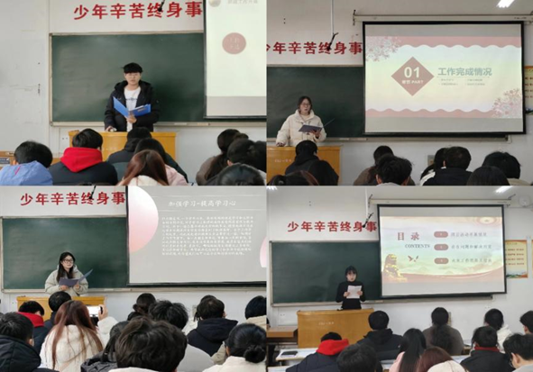 会上,各团支部书记聚焦本年度工作情况进行汇报。从加强团员和青年思想引领、落实基本团务工作、团支部活动开展、规范团员发展流程、配合班级事务管理等多方面进行汇报,总结本年度工作成果、反思不足、展望未来。辅导员王璐璐对此次述职汇报进行点评,对过去一年度工作进行肯定,对未来工作提出期望与要求。勉励各团支部书记加强学习,扎实团务工作能力,增强责任感和服务力,打造充满活力的团支部。