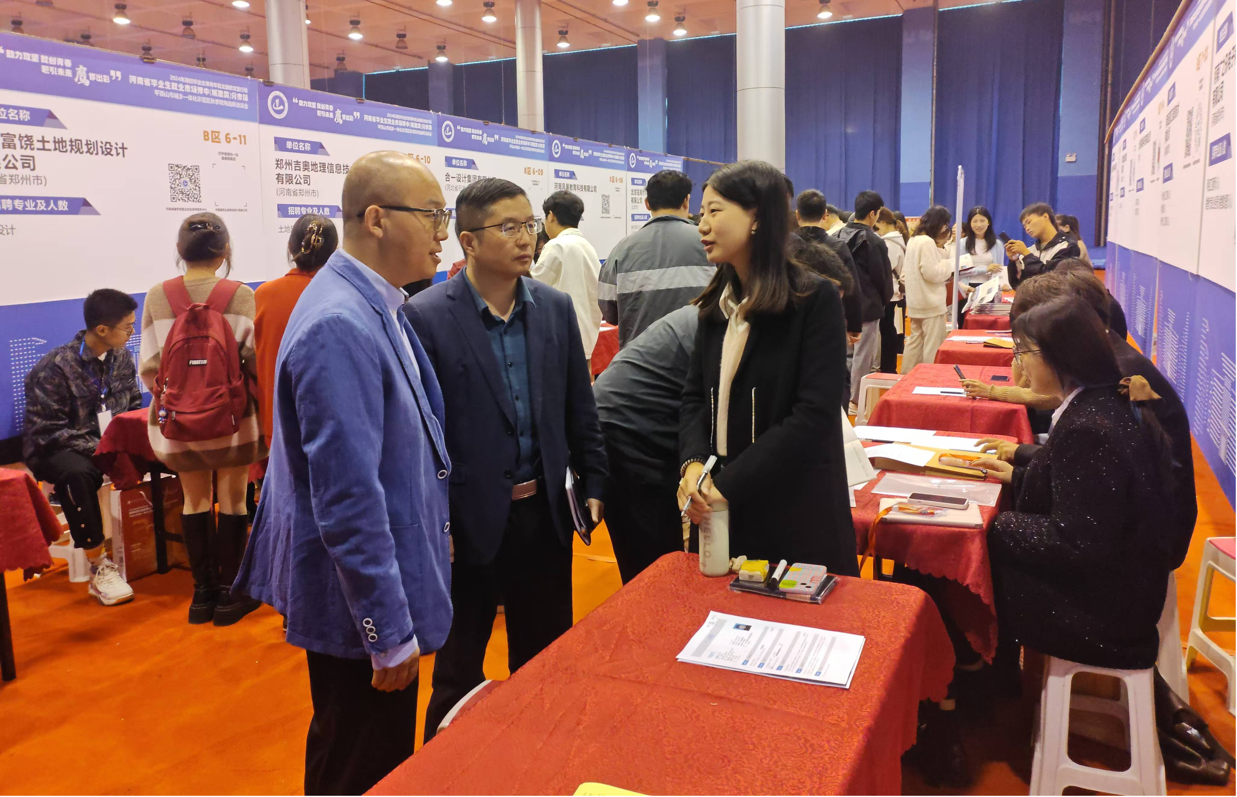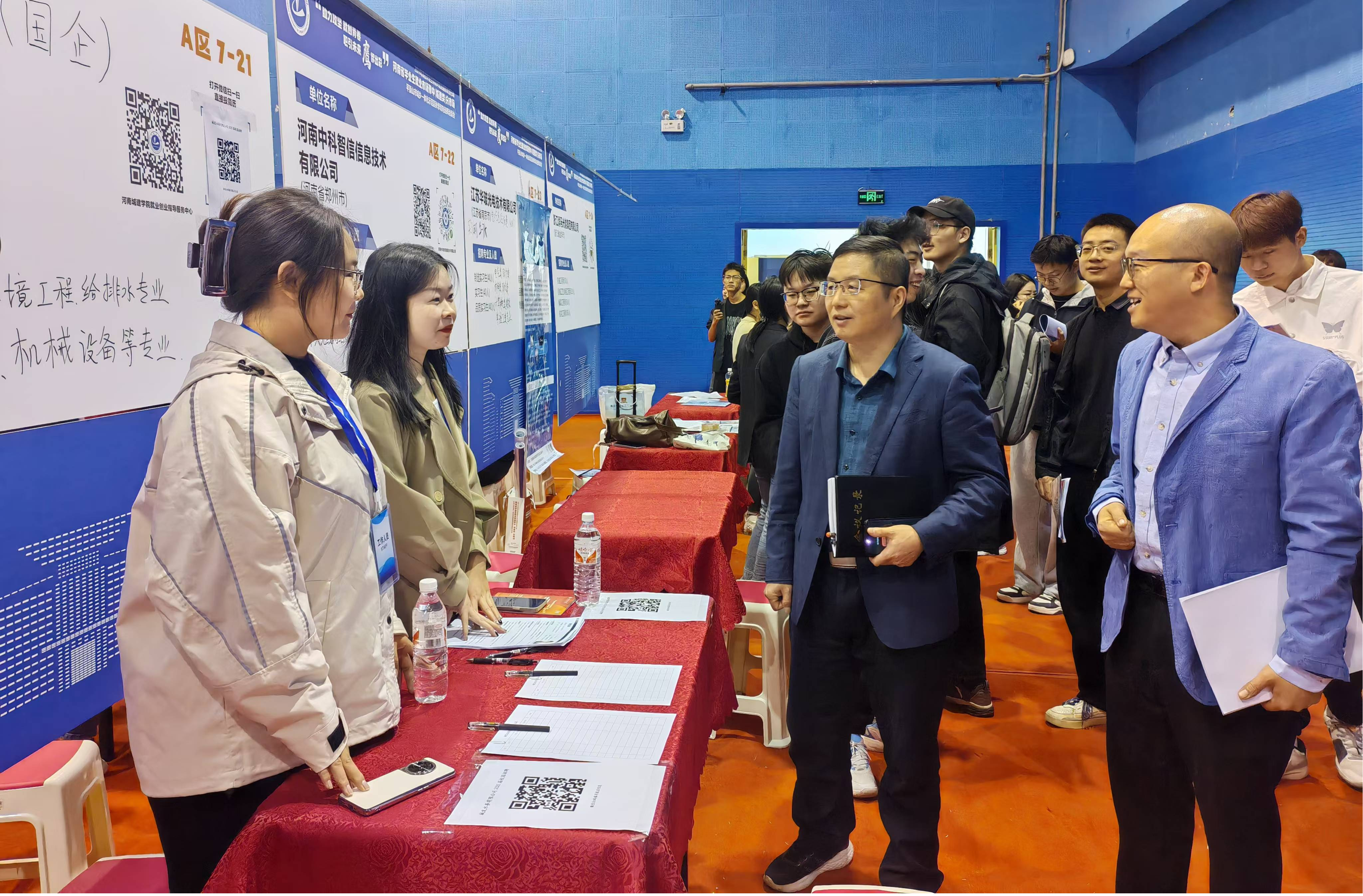 招聘会现场气氛热烈,众多企业代表与毕业生积极互动,交流各自的需求和期望。姜忠峰先后与南京联凯环境检测技术有限公司、城发水务有限公司等多家企业进行交谈,了解单位的招聘需求和相关待遇等,同时介绍了公司专业特色和员工优势,希望能够与企业建立更为紧密的合作关系,为员工提供更多的实习和就业机会。用人单位表示希望与公司建立更为密切的合作关系,愿意为毕业生提供更多的优质岗位。