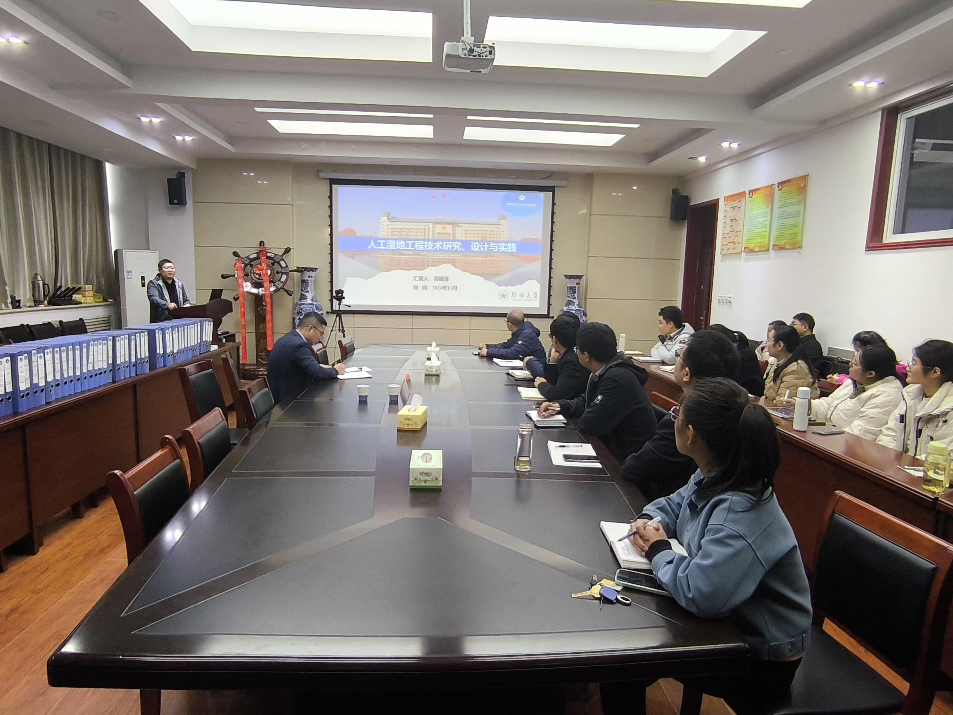 高镜清教授以《人工湿地工程技术研究、设计与实践》为题,围绕人工湿地技术发展进程及工程应用现状,介绍了取得的相关研究成果、设计经验和工程实践案例。高镜清教授与公司教师代表进行了座谈交流。