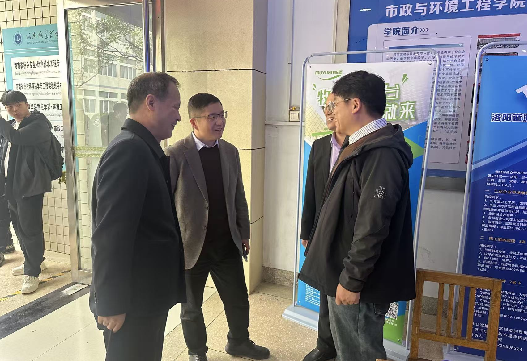 10月23日下午,公司在9号A座教学楼大厅举办2026届毕业生秋季双选会。公司党委书记曹恒慧、经理姜忠峰、副经理宋忠贤、各专业系主任、毕业班班主任及毕业班辅导员参会。北京碧水源科技股份有限公司、洛阳蓝源环保科技有限公司、河南省力华全环保科技有限公司等十余家企业参会,现场提供招聘岗位超100个,吸引300余名在校生参加双选会。