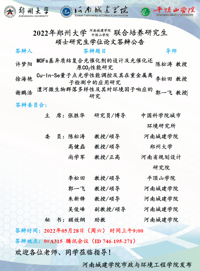 硕士研究生学位论文答辩公告