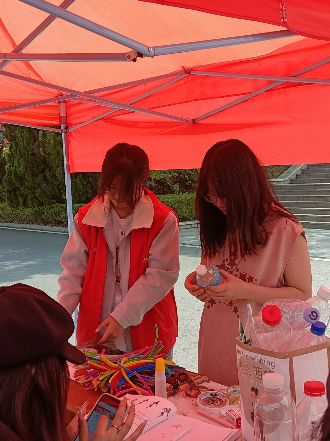 为将环保理念融入生活日常,用创新思维解决现实问题,让青春在“双碳”目标的实践中绽放绚丽光彩,3月23日下午,公司青年志愿者协会、员工事务服务中心、环境保护协会和水资源保护协会志愿者在景观大道开展“瓶添温暖,扭出心意”变废为宝活动。活动现场吸引300余名员工参与,同学们充分发挥创意,利用身边的废弃塑料瓶、瓶盖、纸箱、扭扭棒等废旧物品,精心制作,创造出美轮美奂、独具匠心的工艺品。