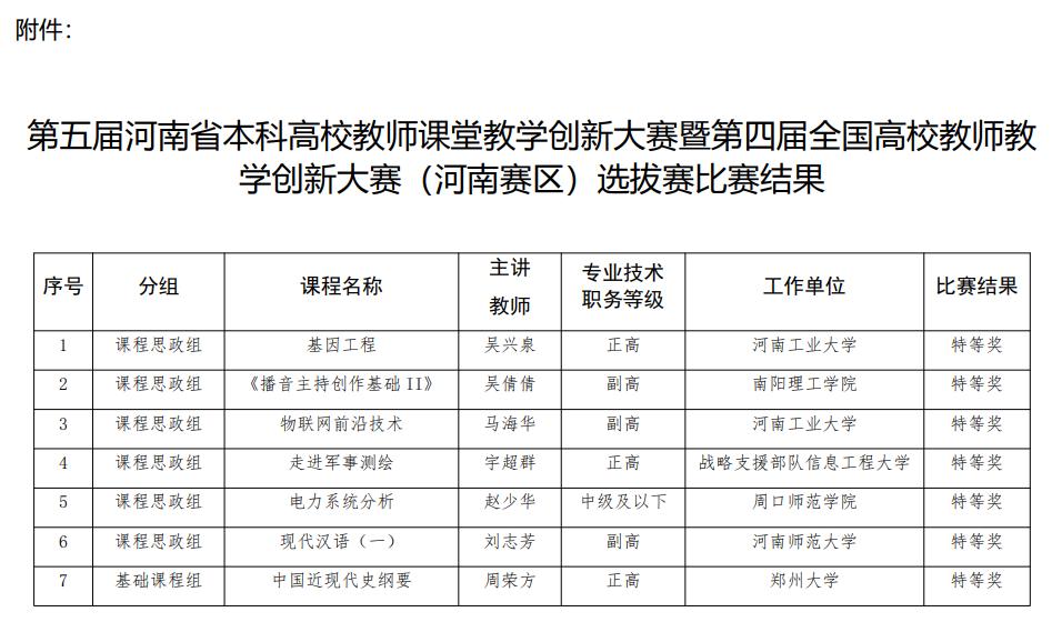 2024年3月下旬至4月上旬,由河南省教育厅主办,河南省高等教育学会、郑州大承办的第五届河南省本科高校教师课堂教学创新大赛暨第四届全国高校教师教学创新大赛 (河南赛区)选拔赛在郑州举行,公司张霞(团队)、娄全(团队)荣获新工科组二等奖。