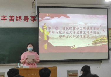 (通讯员:程铄斐 韩菁)为深入学习习近平新时代中国特色社会主义思想,认真贯彻落实习近平总书记关于青年工作的重要论述,着力为党培养和输送坚定的青年政治骨干,按照校团委“青年马克思主义者培养工程”的实施方案要求和市政公司党委工作安排,4月10日下午,公司在9A406教室举行青年马克思主义者培养工程培训班开班仪式。公司团总支副书记张轩轩、全体辅导员及青马班学员参加了开班仪式。