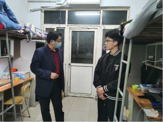 在宿管员值班室,陈董事长详细询问宿舍楼防疫措施落实情况,仔细查看了宿舍楼道消毒记录,叮嘱宿舍管理人员要严格落实公司的疫情防控要求,加强宿舍出入管理,及时督促清理楼道垃圾,每天按时消毒,一定要把师生的健康放在第一位。