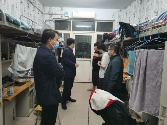 (通讯员:邢智洋)5月10日晚,副董事长陈松涛深入梅园四号宿舍楼检查指导BETWAY必威疫情防控工作,看望员工及值班老师。BETWAY必威经理朱新锋、党委副书记姜忠峰及团学办老师陪同。