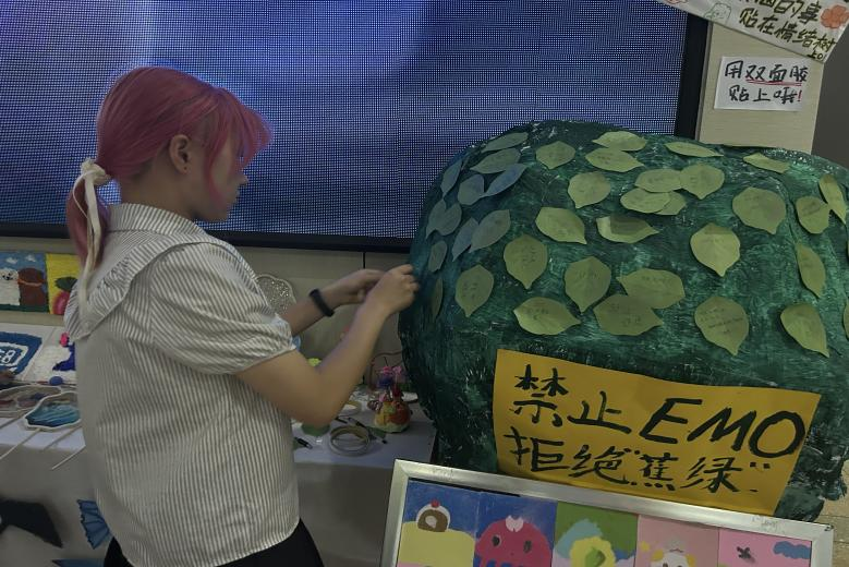 活动现场,一棵手工制作的大树被精心布置成“情绪树”,树上醒目的“禁止emo,拒绝焦虑”标签,吸引着过往毕业生的目光。公司为毕业生们发放了便利贴和笔,鼓励大家将内心的焦虑、迷茫、困惑,亦或是对未来的期许、对校园生活的不舍,都倾诉于纸上,然后粘贴在“情绪树”上。