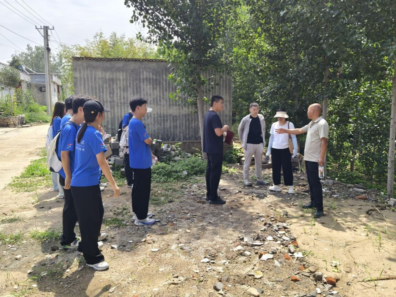 抵达良西庄村后,实践团成员与村干部成员探讨交流,了解乡村村发展困境并制定相应解决方案。依据所学知识,同学们手持工具清理道路杂物、测量污水管道长度及高程,为排污管道的设计提供基础数据;走进田间地头,在村干部的指引下,观察农作物生长状态,调研土地利用、生态环境及水资源利用等情况,为后期制定方案提供依据。