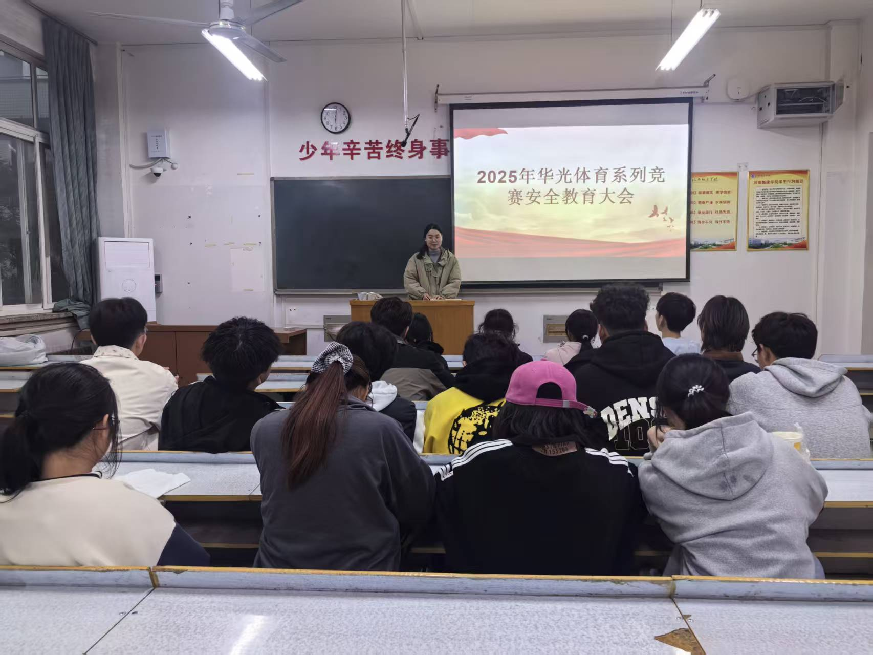 为更好迎接公司2025—2026学年第一学期“华光”体育活动的开展,保障训练和比赛期间各项工作的顺利展开,强化参赛员工的安全意识,10月17日,公司召开本学期华光体育赛事赛前安全教育大会。辅导员曹玉婷,全体参赛队员参与此次会议。
